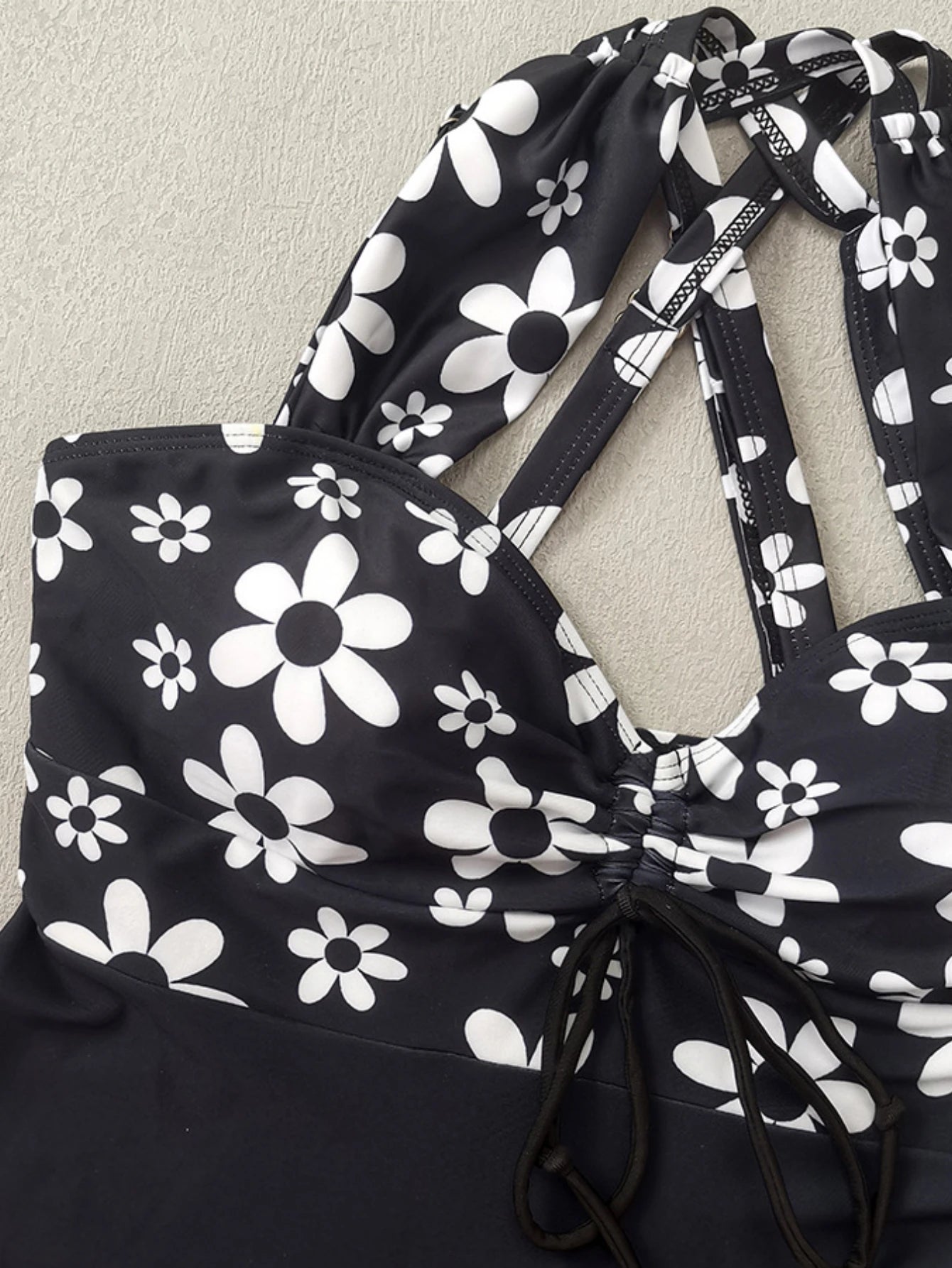 Set en color negro con estampado floral vintage, confeccionado en secado rápido y alta elasticidad (4-way stretch) para que se adapte al cuerpo sin deformarse. El forro suave ayuda a evitar transparencias y el calce se siente cómodo y seguro todo el día: ideal para playa, piscina y actividades acuáticas.